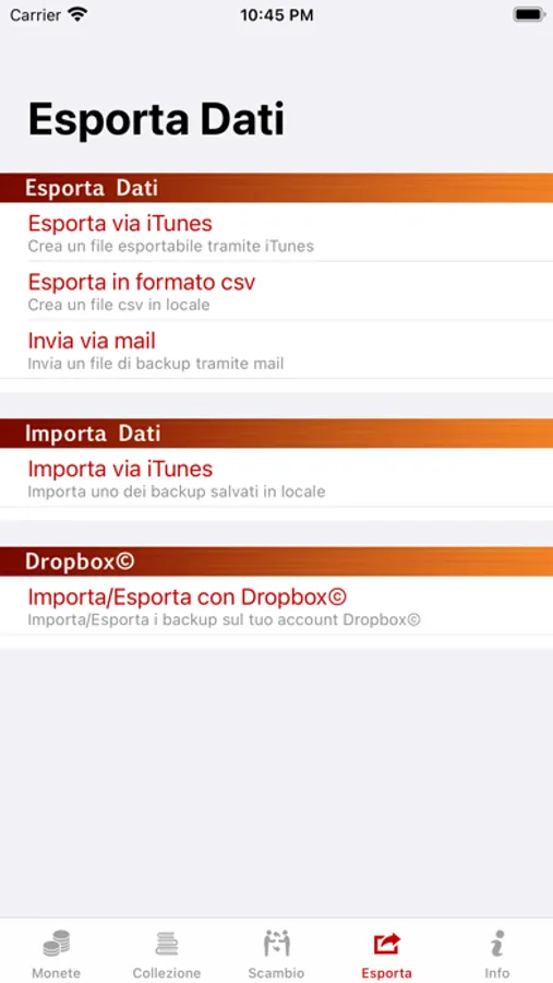 - Esportare tutti i dati in formato csv per averne una copia su foglio elettronico