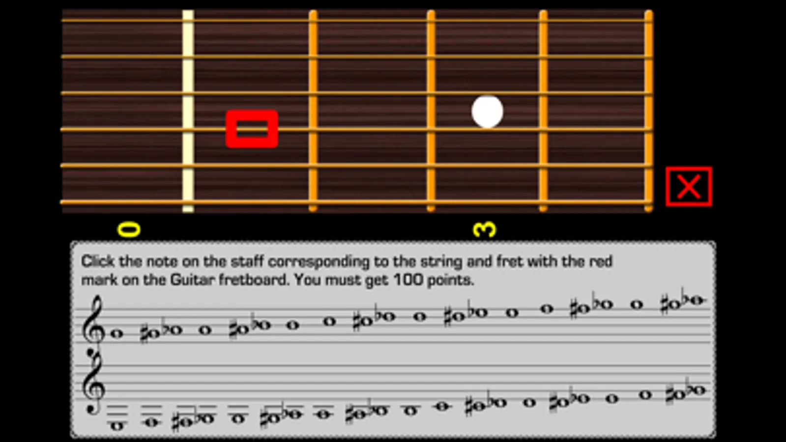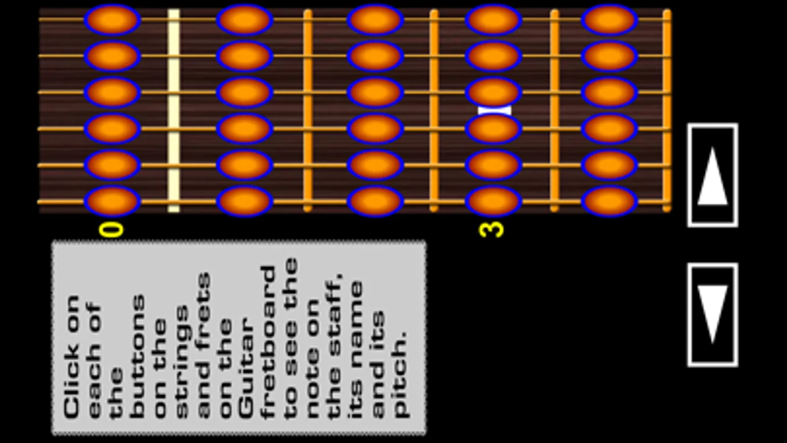 On the GUITAR NOTES SECTION you can click on the strings and frets of the Guitar to see the corresponding note on the staff, its name and its pitch. It has exercises so you can practice recognizing the notes of the Guitar: