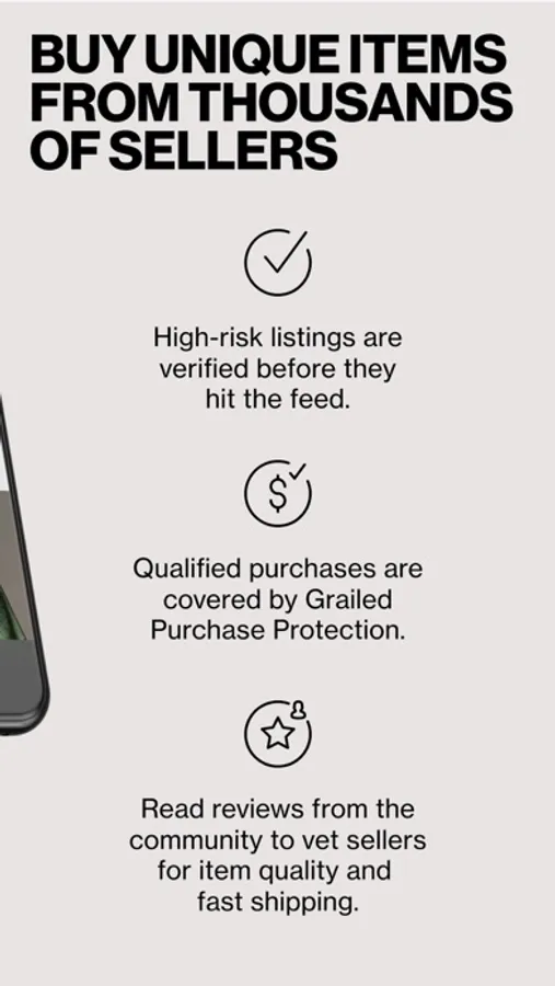 Seller Ratings, Reviews, Transaction History and Seller Badges provide transparency and added peace of mind. Grailed relies on direct feedback from community members to provide additional accountability.