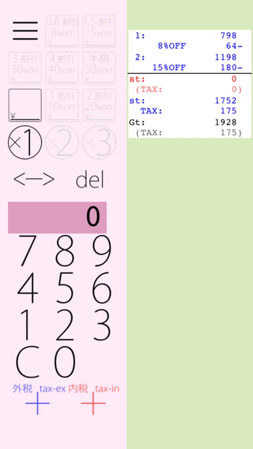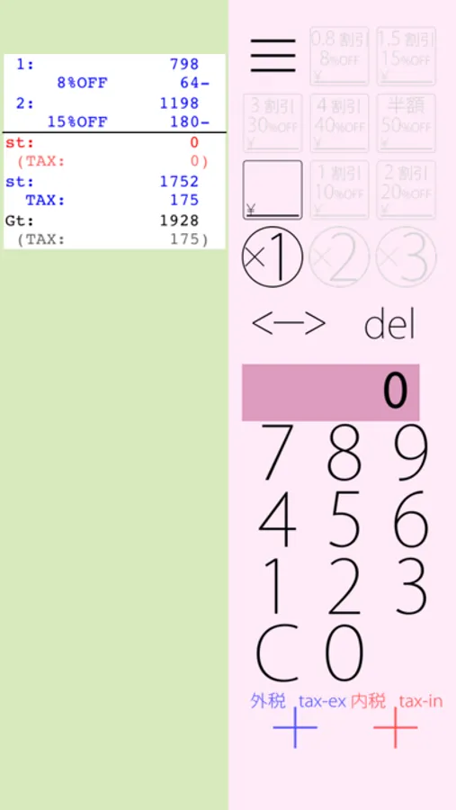 One hand calculator for shopping(e.g. at super market, drugstore).