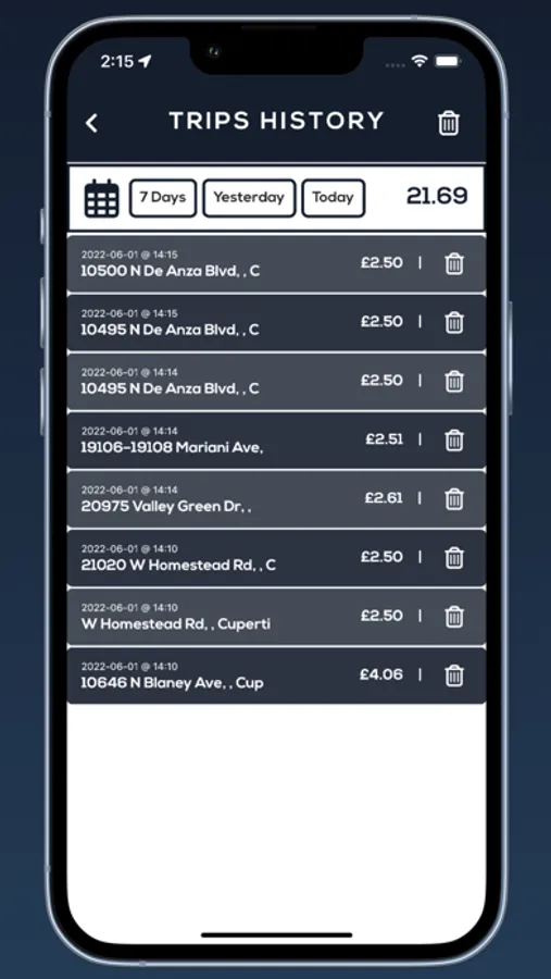 3 - Keep records of all the trips in History with sorting and exporting functionality.