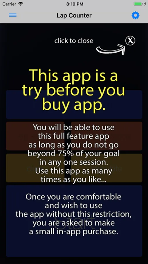 The app will calculate the number of laps required to meet your goal. You simply input the length of the lap (track, course, pool, etc.) and how far you'd like to go that day. The app takes care of the rest.