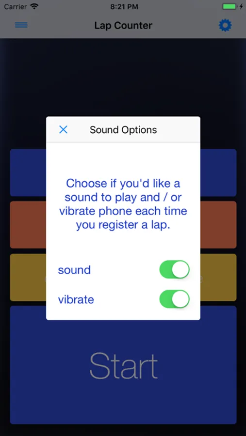 As you register each lap, the user is required to tap and push on the screen for 2 seconds, to avoid false laps. This allows you to fumble with your iPhone when running, and when ready, click and push on the screen. Your phone will vibrate and send a soft sound to indicate the lap was successfully recorded.