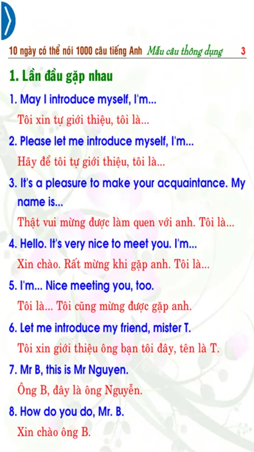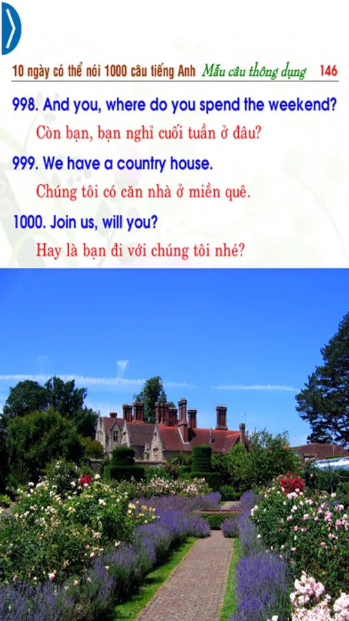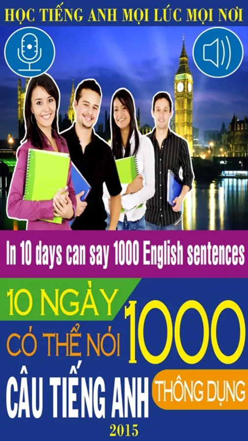 Quyển sách “10 ngày có thể nói 1000 câu tiếng Anh – Mẫu câu thông dụng (In 10 days can say 1000 English Sentences – Common Sentences)” gồm 146 trang được thực hiện theo tiêu chí “Học tiếng Anh mọi lúc mọi nơi” khi trong tay có chiếc điện thoại thông minh. Bản thân sách SmartBooks của chúng tôi đã rẻ hơn sách giấy nay chúng tôi giảm thêm giá bán SmartBooks để kích cầu đọc sách và sử dụng sách Smartbooks trong kỷ nguyên số hiện nay. Sách được tích hợp âm thanh (audio) vào trong sách, đánh dấu từng câu khi đọc, khi cần nghe lại câu vừa mới đọc hay câu nào đó thì bạn chỉ cần chạm tay vào câu đó thì sẽ phát âm thanh; Ngoài ra SmartBooks còn có tính năng thu lại giọng đọc (giọng của bạn tập đọc câu vừa học, vừa nghe) của bạn bằng cách nhấn vào nút Recorder (icon Micro), khi bạn nhấn vào icon “Headphone”, “Nghe và viết”, xuất hiện màn hình có rất nhiều tính năng giúp bạn nghe và viết lại câu vừa nghe bằng phím hay bằng tay,… Sách được thiết kế để sử dụng mọi lúc mọi nơi khi trong tay bạn có chiếc Smart Phone. Đây là một bước đột phá của chúng tôi trong thời đại công nghệ số nó sẽ giúp các bạn rất nhiều trong việc học và đọc sách.