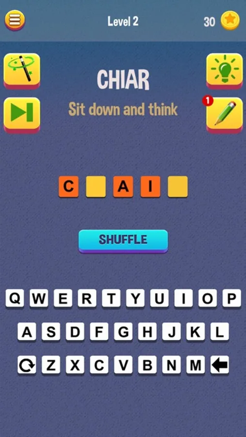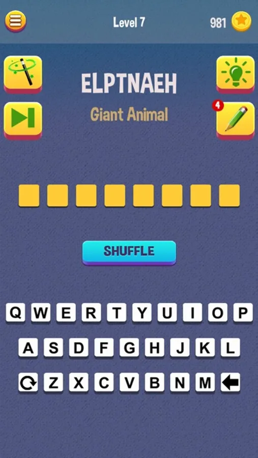 Mumbo Jumbo is a word puzzle game based on Anagrams, that gives you a group of scrambled letters and requires you to unscramble them to make a real word.