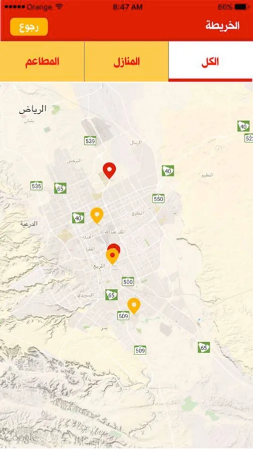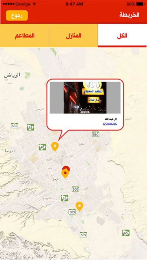 - التطبيق يعرض اماكن ومنتجات المطاعم التجارية و المنازل المنتجة.