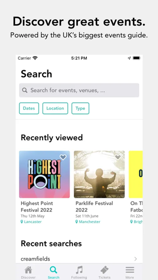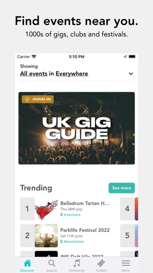 * Never miss out on an event near you by discovering club nights, gigs and festivals on your doorstep.