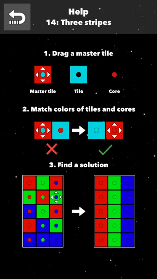 Restore the order in some parallel 2D universe by matching color patterns of tiles on a surface of a doughnut. Or, if you prefer scientific terms: on a surface of a torus. And all you need to do is just to slide tiles by swiping anywhere on the screen.