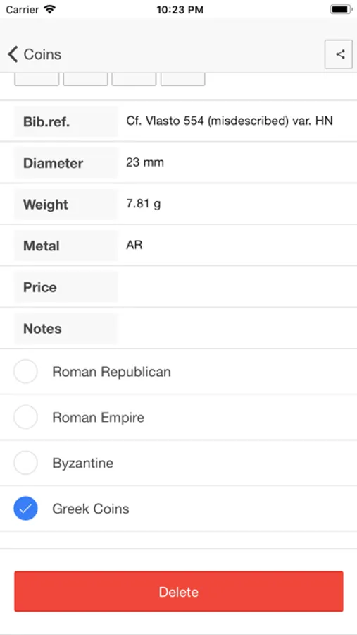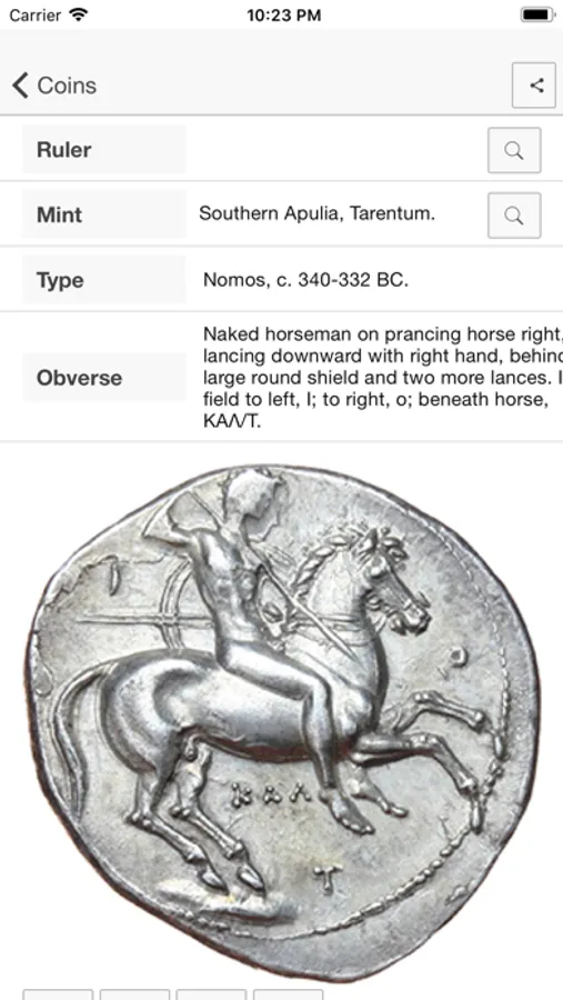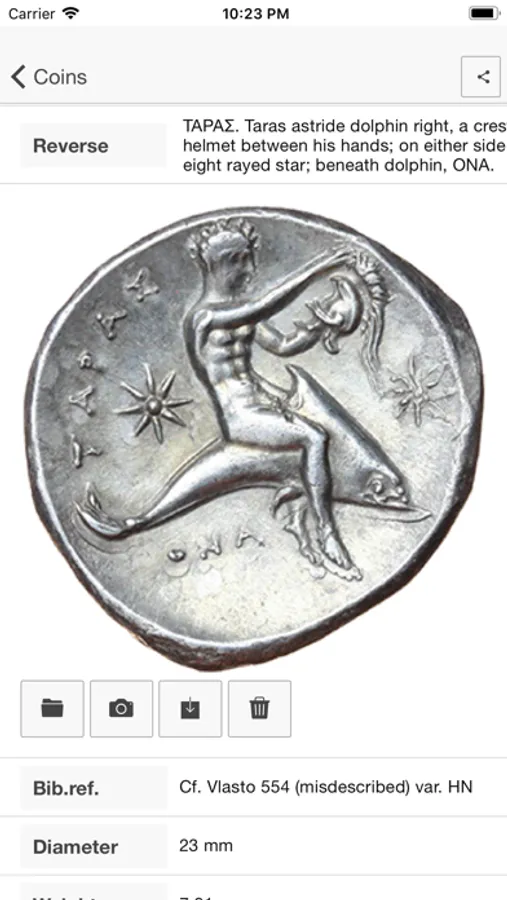 - classify your coins with an optimized form designed by numismatists for numismatists (ruler, mint, coin type, obverse, reverse, bibliography, weight, diameter, etc.)