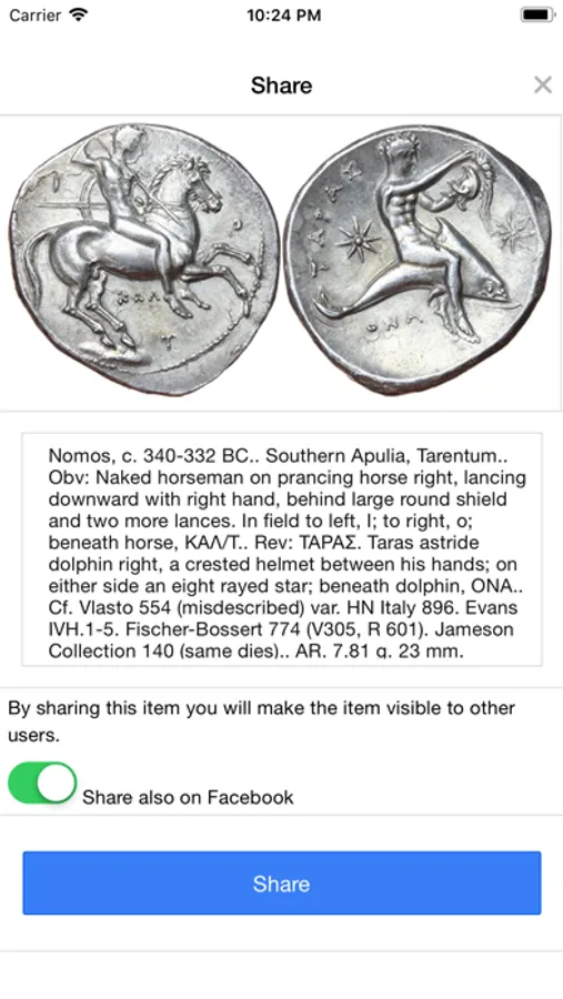 This app is a tool for coin collectors and numismatists. Organize your coin collection easily and efficiently, keep it synchronized across devices and share it!