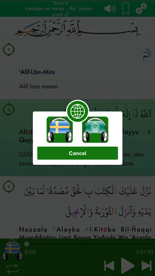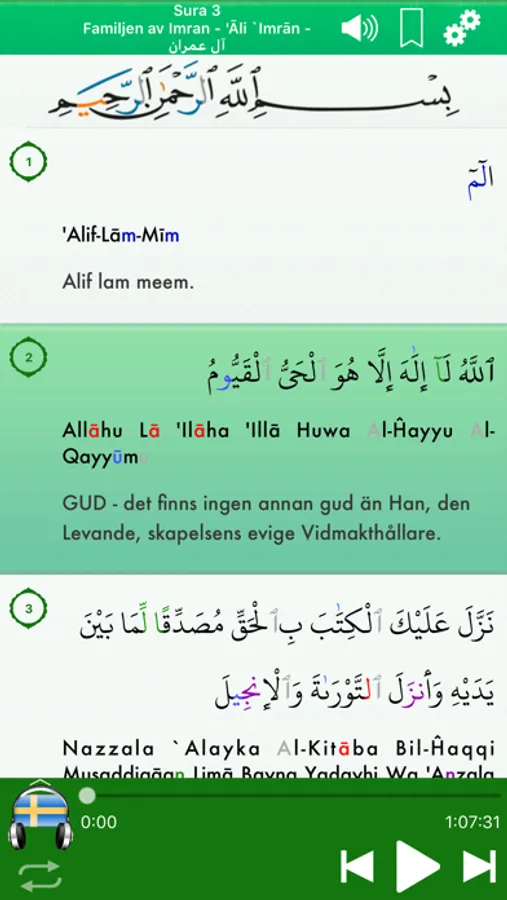 => Inget Internet anslutning krävs för att läsa eller lyssna på Koranen