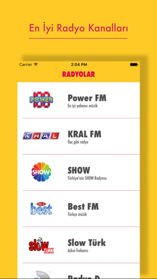 Sevdiğiniz tüm radyo kanallarını tek bir programda topladık. Türkiyenin ve dünyanın dinleği populer şarkılar artık her zaman yanınızda.
