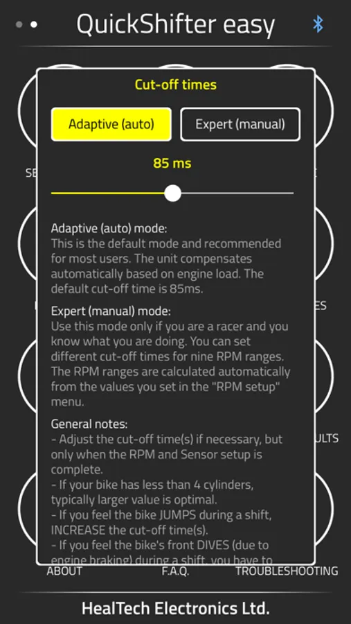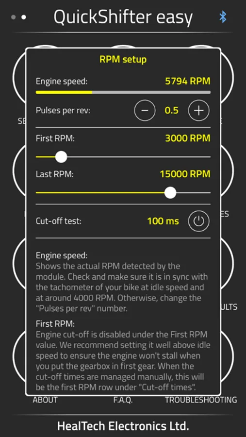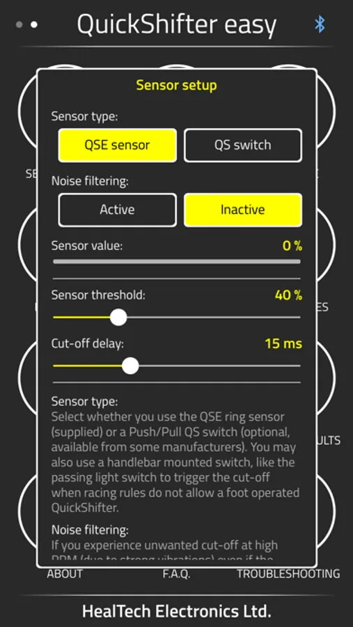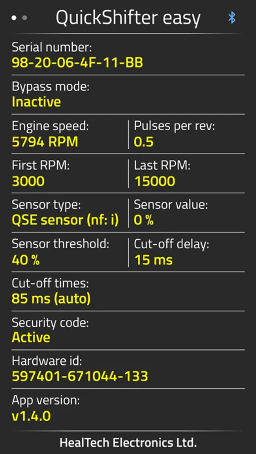 Use this application to control your QuickShifter easy (iQSE) module from HealTech through your iOS device via Bluetooth.