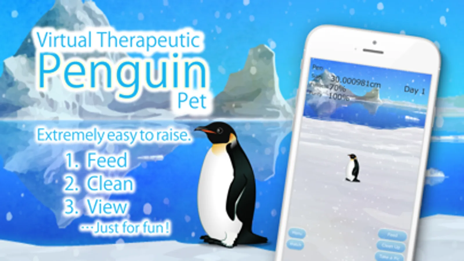 Care is very easy. You should feed penguin once every three days, and clean up only once a week.