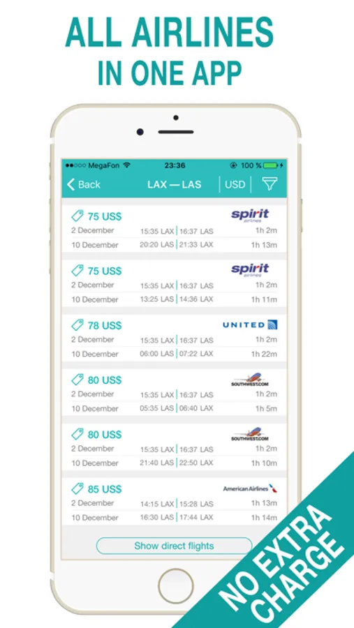Low-cost and regular flights are updated every second and you will not miss a single ticket.