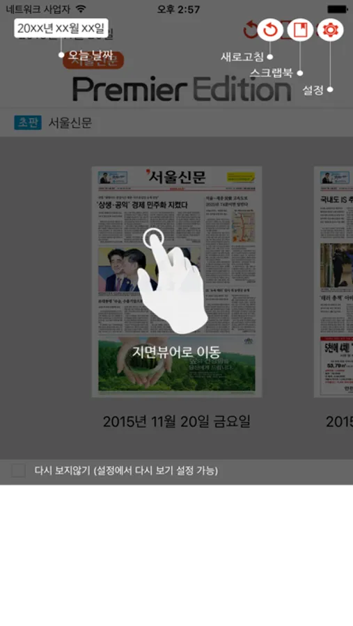 서울신문 발행일 전날 저녁에 발행되는 초판을 PC와 모바일에서 쉽고 편하게 볼 수 있는 디지털 초판 'Premier Edition'입니다.