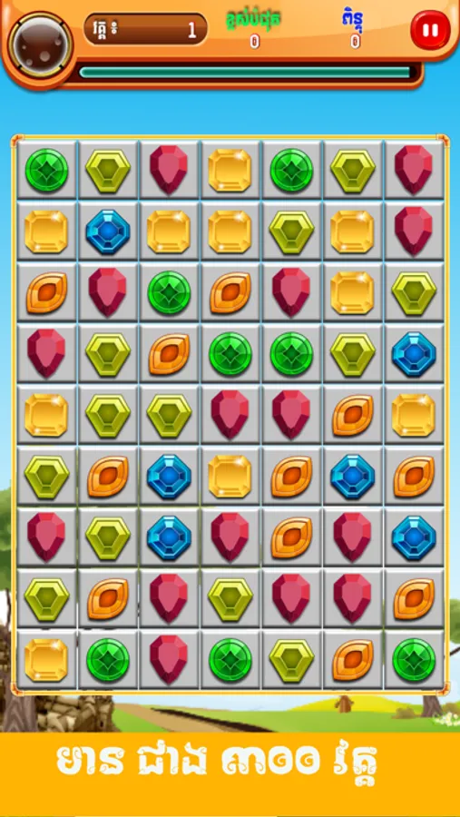 Match 3 Game in Khmer. Collect the at least 3 or more same type of jewel to score.