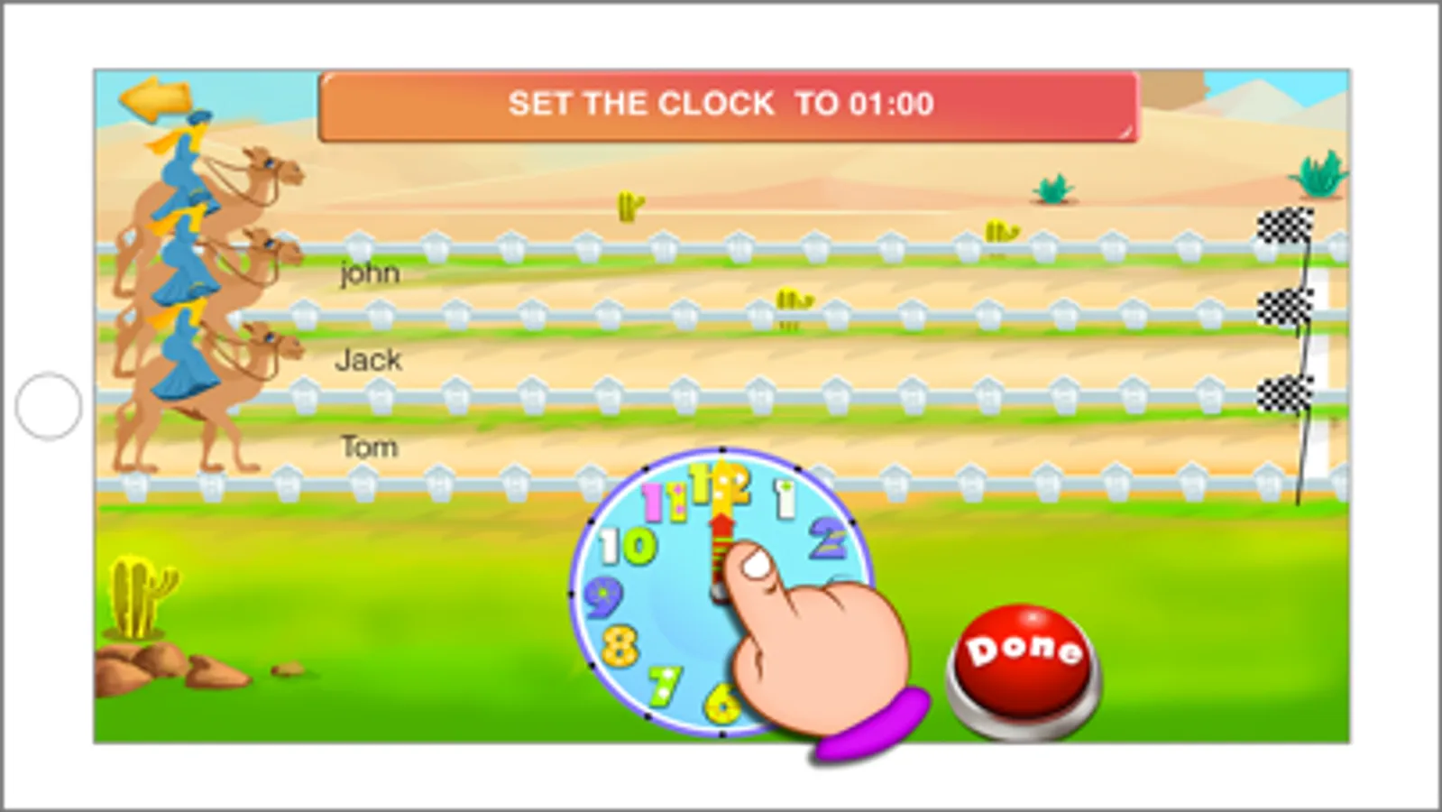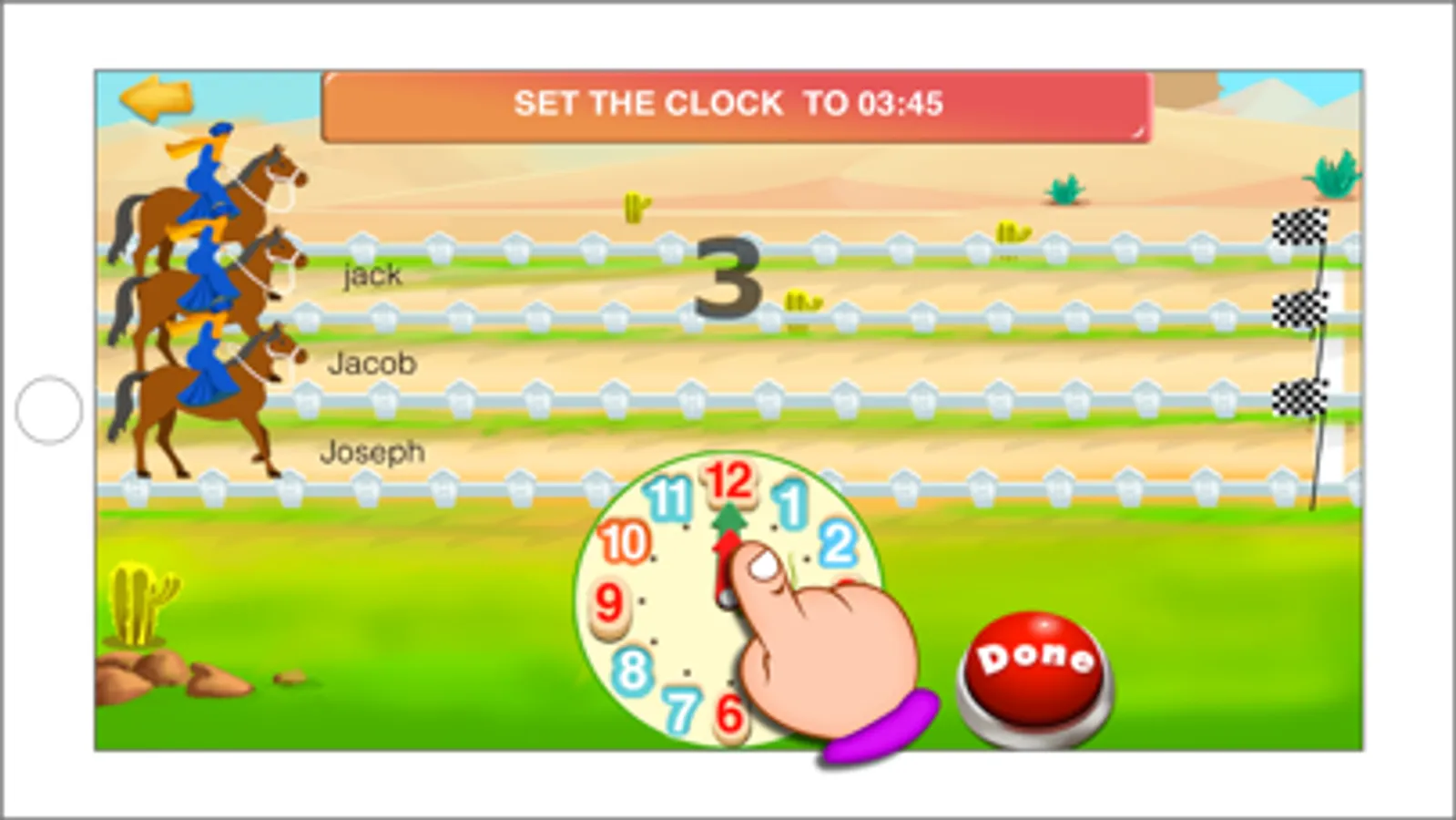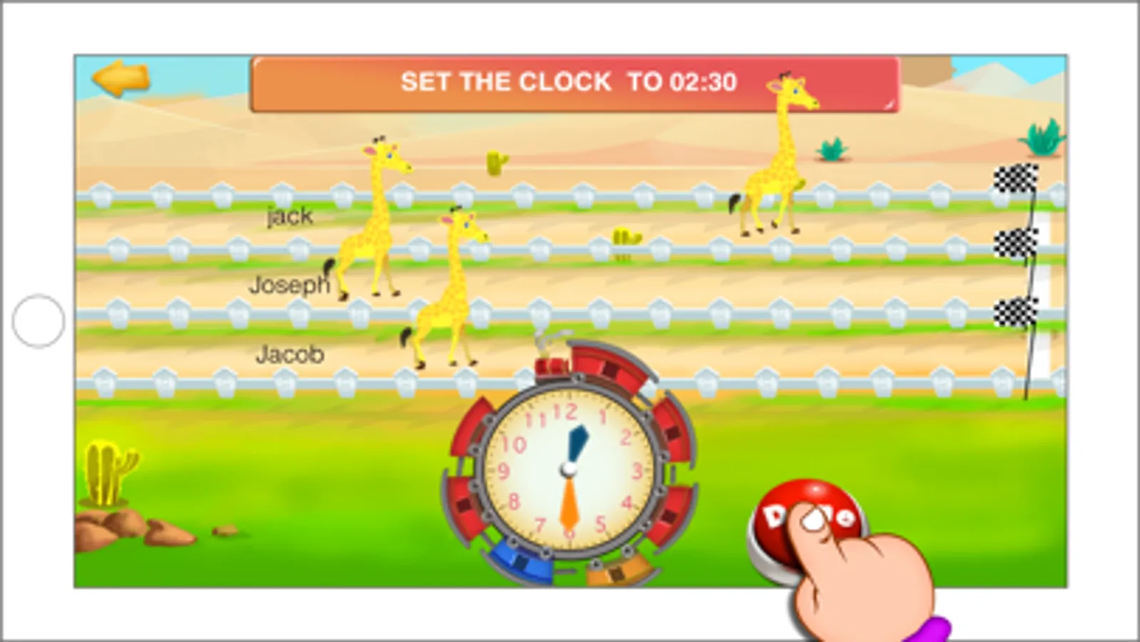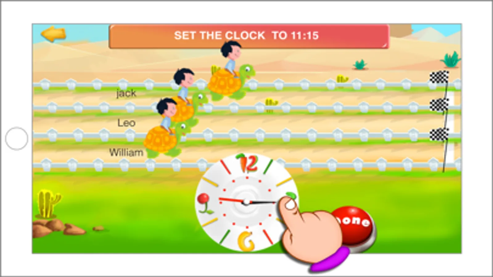 The app is deliberately designed to slow down the friends so that your children can win the race. Winning the race would want them to play more resulting in lots of practice of telling time.