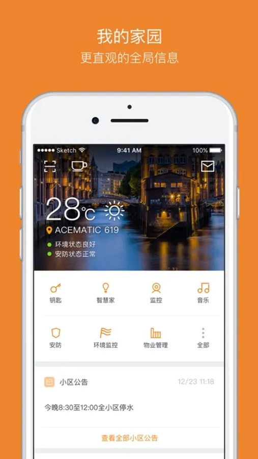 不管您身处何地,您都可以随时查看您家中的安全情况,查看小区公共区域影像。