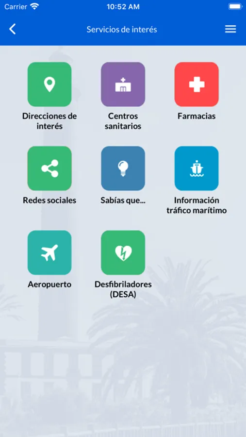 - Acceder a un mundo de servicios con utilidades que seguro serán de tu interés (farmacias de guardia, ubicación de las dependencias municipales, el tiempo en tus playas, llegadas y salidas en el aeropuerto, etc...).