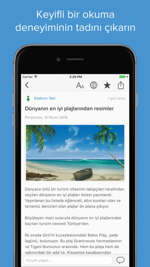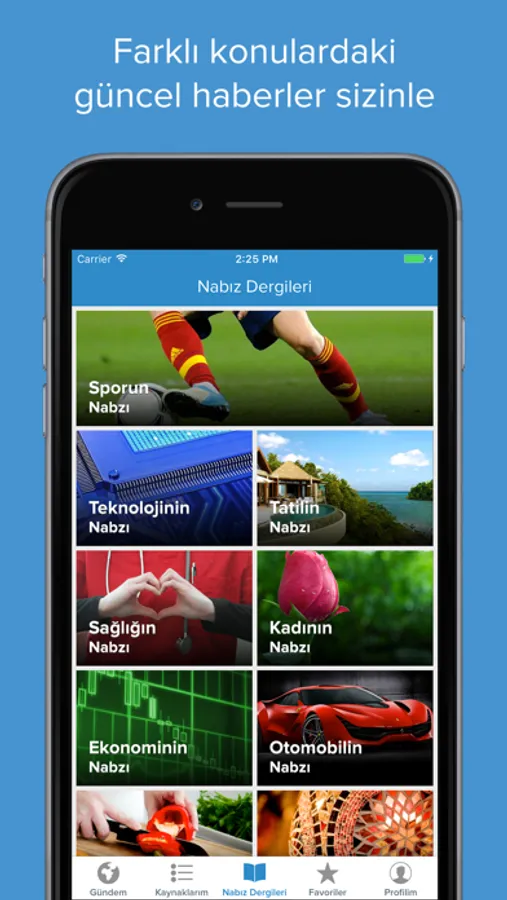 Nabiz is a FREE App enabling you to stay up-to-date with your favorite news, by customizing and personalizing your newsfeed from over 700 Turkish news sources, including local and international Newspapers, News Agencies, TV Channels, Government Entities, Sports Clubs, Economy, Column Writers, Technology, Health, Automotives, Entertainment, Women & Beauty, Food, and Tourism.