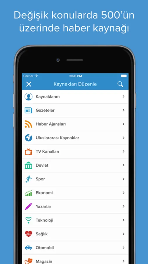 Yerli ve yabancı gazeteler, haber ajansları, televizyon kanalları, devlet kuruluşları, spor kulüpleri, ekonomi, köşe yazarları, teknoloji, sağlık, otomobil, magazin, kadın, güzellik, yemek ve tatil gibi pek çok konuda favori haber kaynaklarından dilediğinizi seçebilirsiniz.