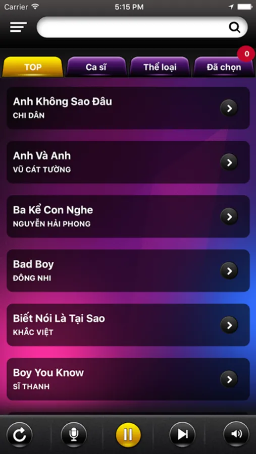 - Khi tìm kiếm không thấy bài hát, ca sĩ sẽ hiển thị gợi ý nhảy sang màn Youtube để tìm kiếm