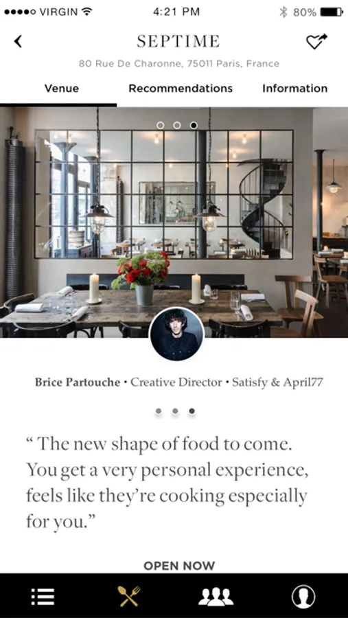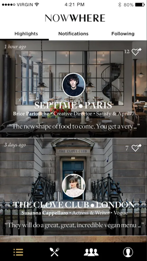 NOWWHERE is a platform for creative professionals to share and exchange restaurant recommendations with each other. By accessing NOWWHERE you will only find restaurants that has been previously recommended by other creatives in fashion, music, film, photography and design. You will also find all relevant information on the restaurant pages and a geolocation is of course available.