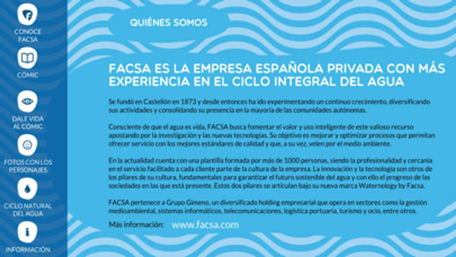 Aumenta todos tus conocimientos sobre El Ciclo Integral del Agua de una forma divertida, sencilla y fascinante de la mano de FACSA: la empresa privada española con más experiencia en la gestión del agua.