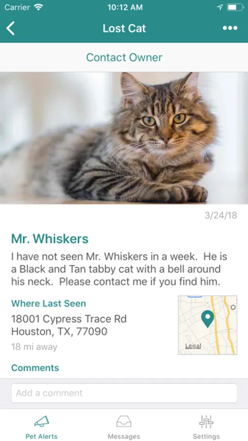 If you find a stray pet, you can use the app to report it. The owner can then contact you privately using the app to pick it up.
