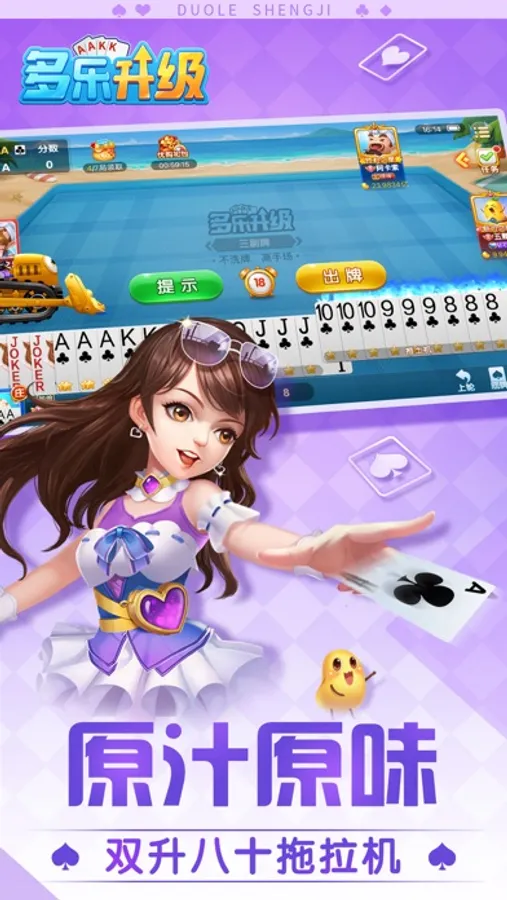 多乐团队专门打造的升级拖拉机游戏,为手机、平板特意适配,带给您优质的视觉体验。拖拉机特效展示,分牌得分展示,一目了然。