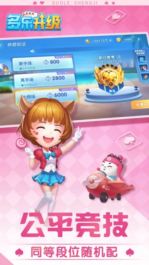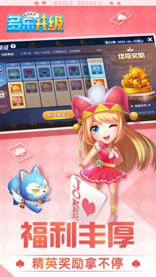 多乐升级是多乐够级、多乐保皇团队精品续作,包含一副牌升级和两副牌双升。在两副牌双升中,又包括经典玩法、炒底玩法、五主过河玩法、连打玩法等。玩法丰富,画面精美,百万玩家同时在线,挑战有记录,回放有录像。打升级拖拉机,双升80分,玩炒地皮双升就来多乐升级嗨翻天,堪称移动端升级拖拉机游戏的经典力作。