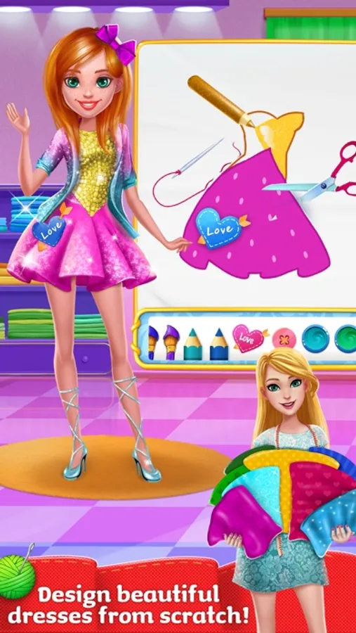 > Paint the walls, sew a curtain, and design the prettiest dressmaking shop ever!