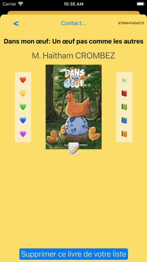 Chaque livre peut avoir 10 drapeaux pour les classer, un texte libre et être attaché à un contact.