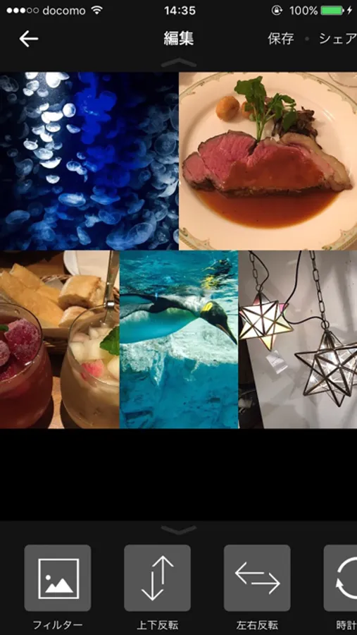 写真を選べるだけでなく、写真のレイアウト調整や写真のサイズ調整、位置の調整や写真の反転、回転、明るさの変更や彩度の変更、コントラストの変更が行えます!また1000種類以上のフィルター機能により撮った写真をさらに味のある写真に加工可能です!