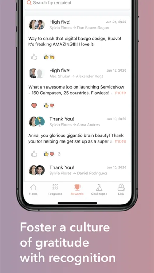 • Recognize your peers anywhere, anytime