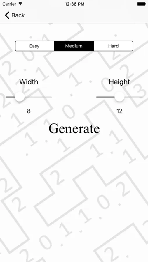 -A puzzle generator that provides new puzzles on demand, with three difficulty levels, from size 5x5 to 20x20