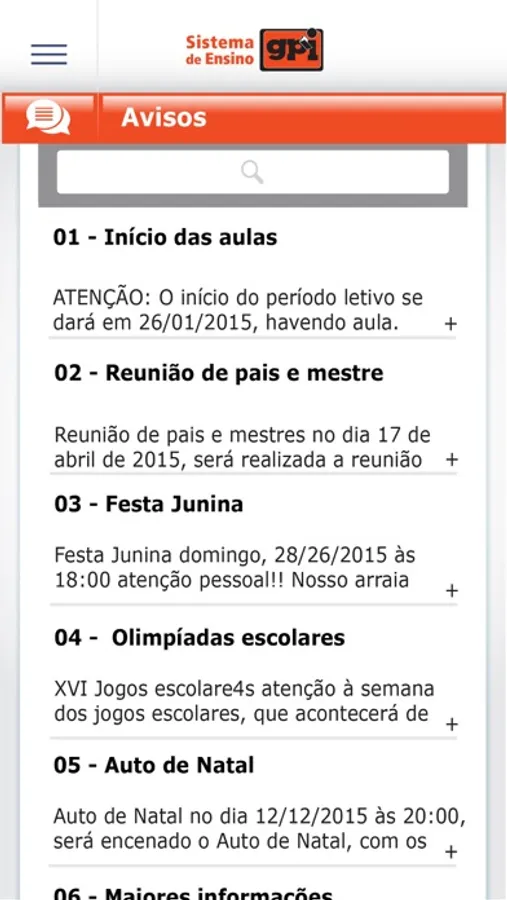 • Visualizar o calendário do ano letivo com todos os eventos escolares, desde provas e reuniões de pais e mestres até excursões, feiras e competições.