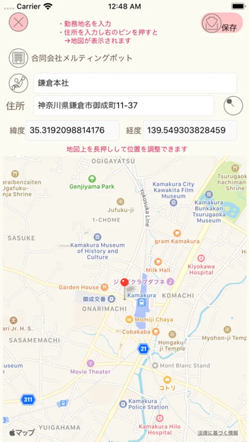 従業員個人のiPhoneをタイムカードにするアプリです。