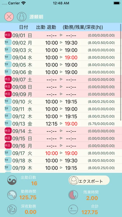 ・今月および先月の全従業員の勤務データを一覧で表示します。