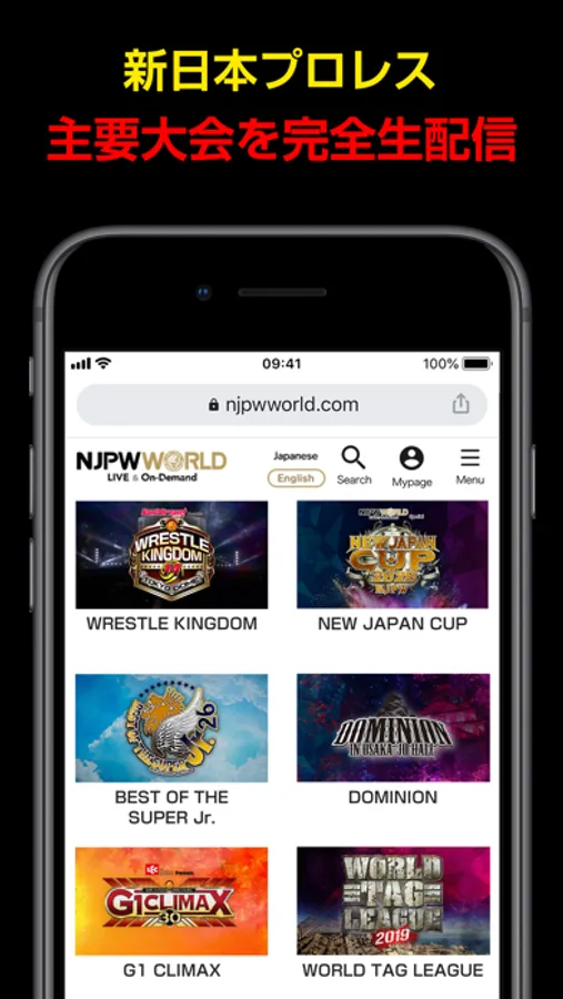 ② Access NJPW World(https://njpwworld.com/)from your web browser, and choose what you want to watch. You can stream live videos and on demand content!