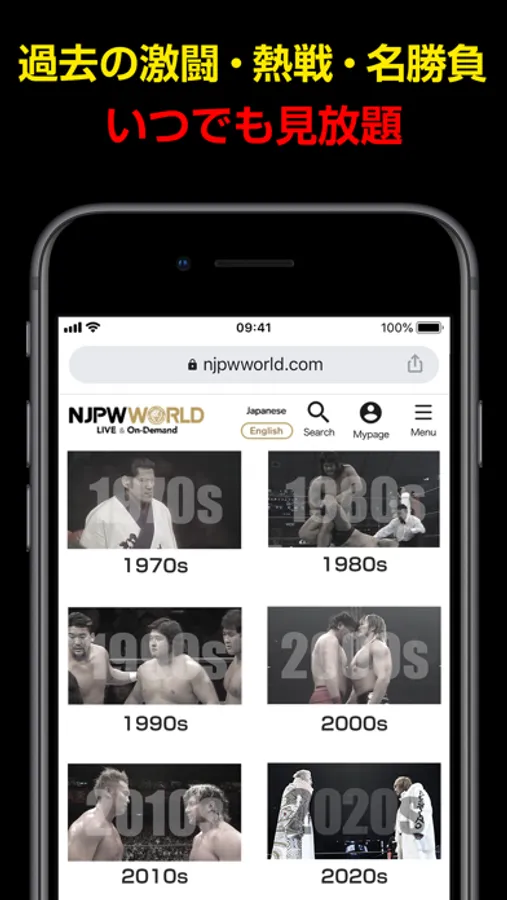 Watch the latest action in real time, or take a nostalgia trip to the greats of the past and discover hidden gems! No matter wherever you are, any time you want, you can experience the thrills of NJPW live and on-demand with the King of Sports Streaming Services!