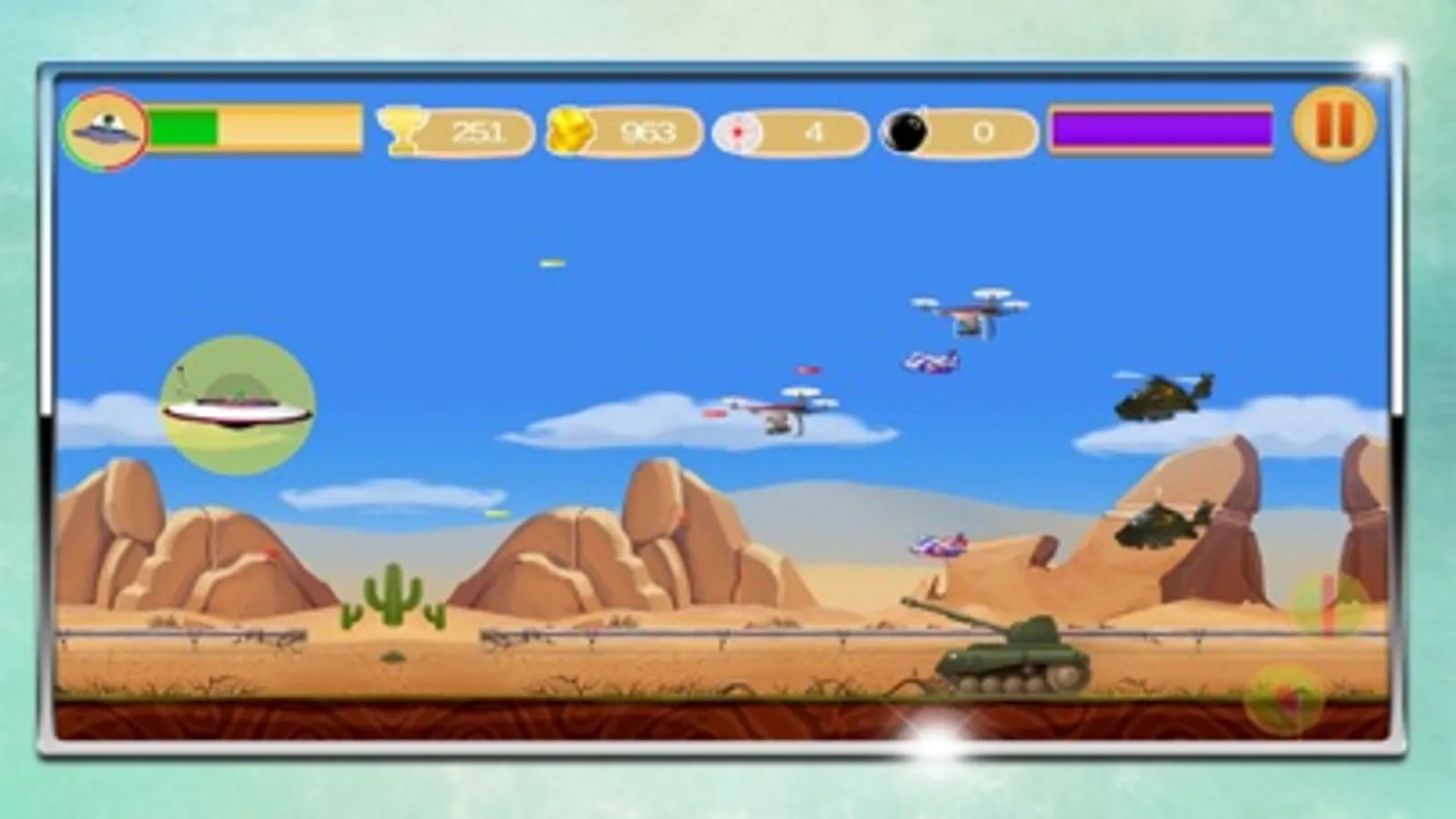 ALIEN SPACESHIP WAR is a mobile game about the invasion on the earth, where the two alien groups from the space have attacked the earth with their dangerous spaceship and helicopter. The environmental issues on the earth have triggered their attention as industrial pollutants are damaging environments on other planets as well.