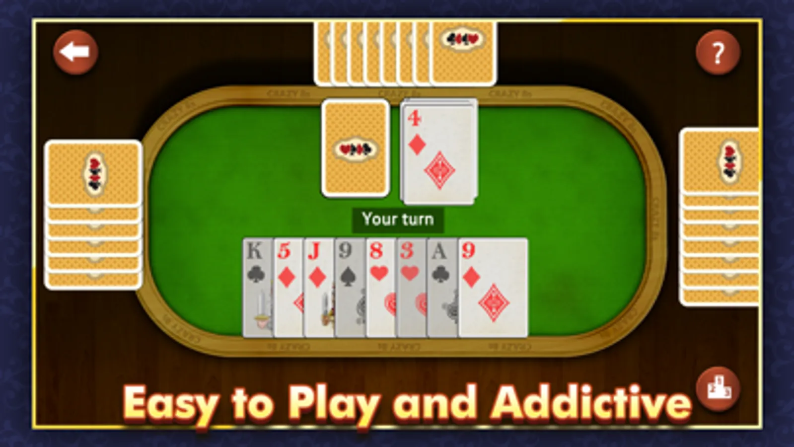 Featuring beautiful graphics and smooth game-play, this Crazy Eights game will keep you addicted.