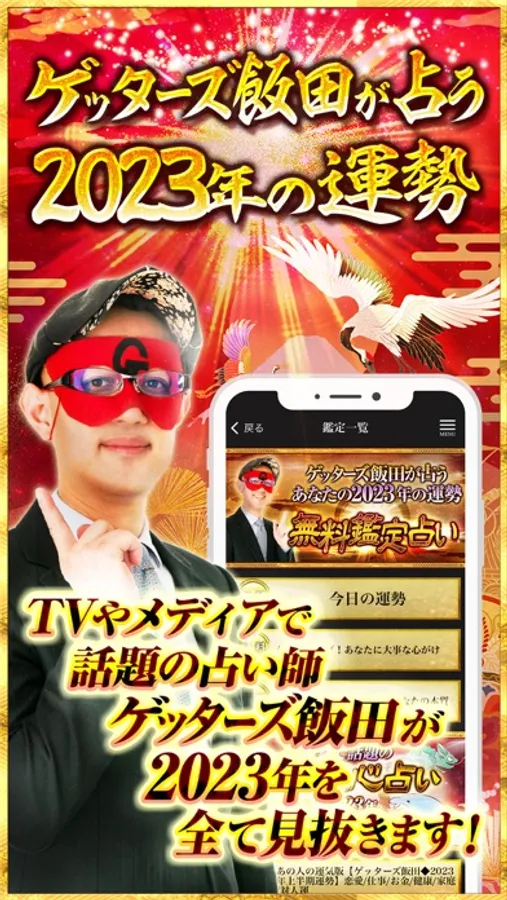2023年を占う鑑定が無料おためし占いで体験できます!ゲッターズ飯田の当たる占いを体験してみてください!
