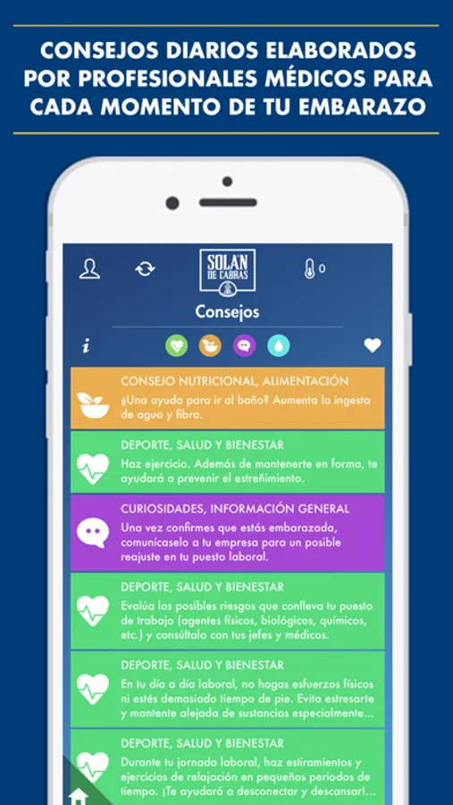 Además podrás encontrar consejos de salud y nutrición, avisos para controlar tu peso y otras ayudas para seguir tus evoluciones durante los nueve meses de embarazo y posteriores de lactancia.