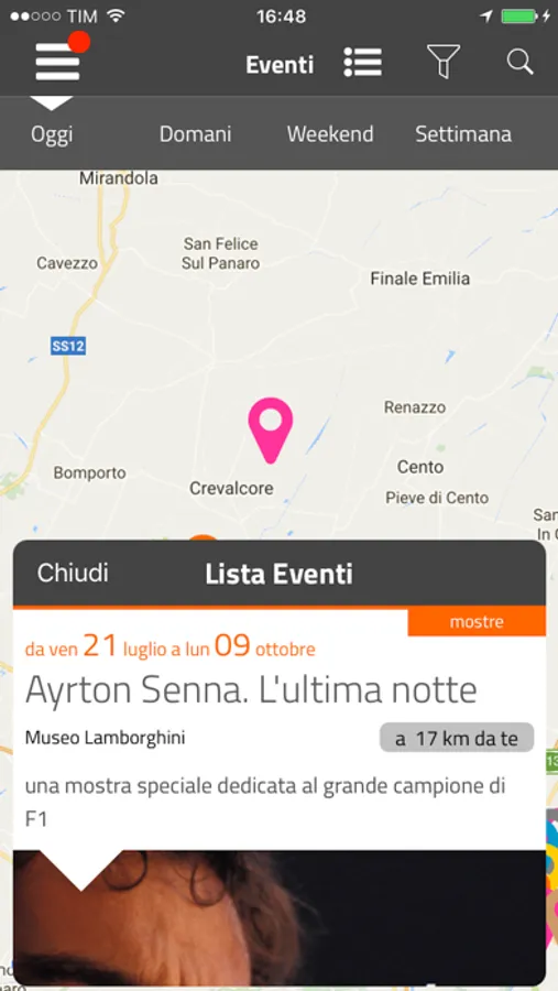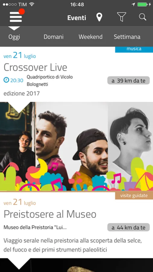 L’app permette di accedere in modo immediato agli eventi di oggi, di domani, del weekend e a tutti gli eventi contenuti nell'agenda.
