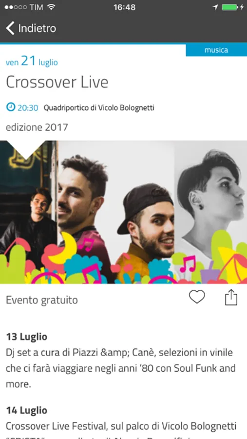 E' possibile aggiungere eventi tra i preferiti e inserire un promemoria nel proprio calendario.