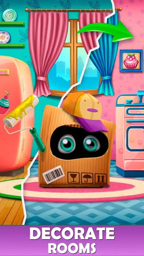 Caress your virtual cat or dog and decorate a room for your pet. Play mahjong, arcade games and match 3 puzzles, earn coins and buy treats in a virtual pet game online and offline.