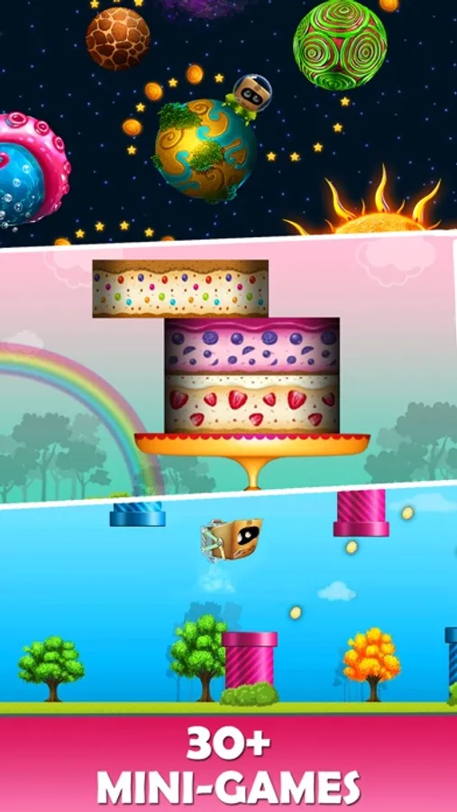 All the cute animals you raise are listed in the magic book. Open it every now and then to visit your animal family and collect coins. Tap the flower pot to check daily tasks and the calendar to learn more about the ongoing events. For instance, collect stars in a space jump game, complete hidden object levels or solve mahjong solitaire. That’s just several examples of daily tasks which bring you extra coins. The pet sim game features a great collection of puzzle games to play offline. New arcade clickers and matching games are unlocked as you achieve higher XP levels.
